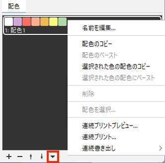 (例:配色1を選択) - 「▼」メニュー または コンテキストメニュー(右クリック)から「選択された色の配色のコピー」を選択します。