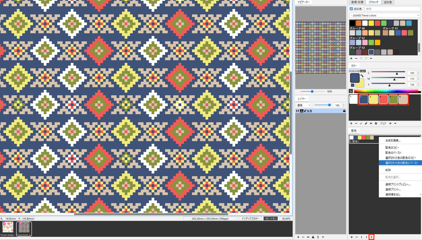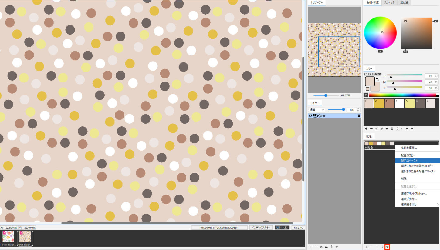 - A図案でコピーした分(5色4配色)が、B図案にペーストされました。