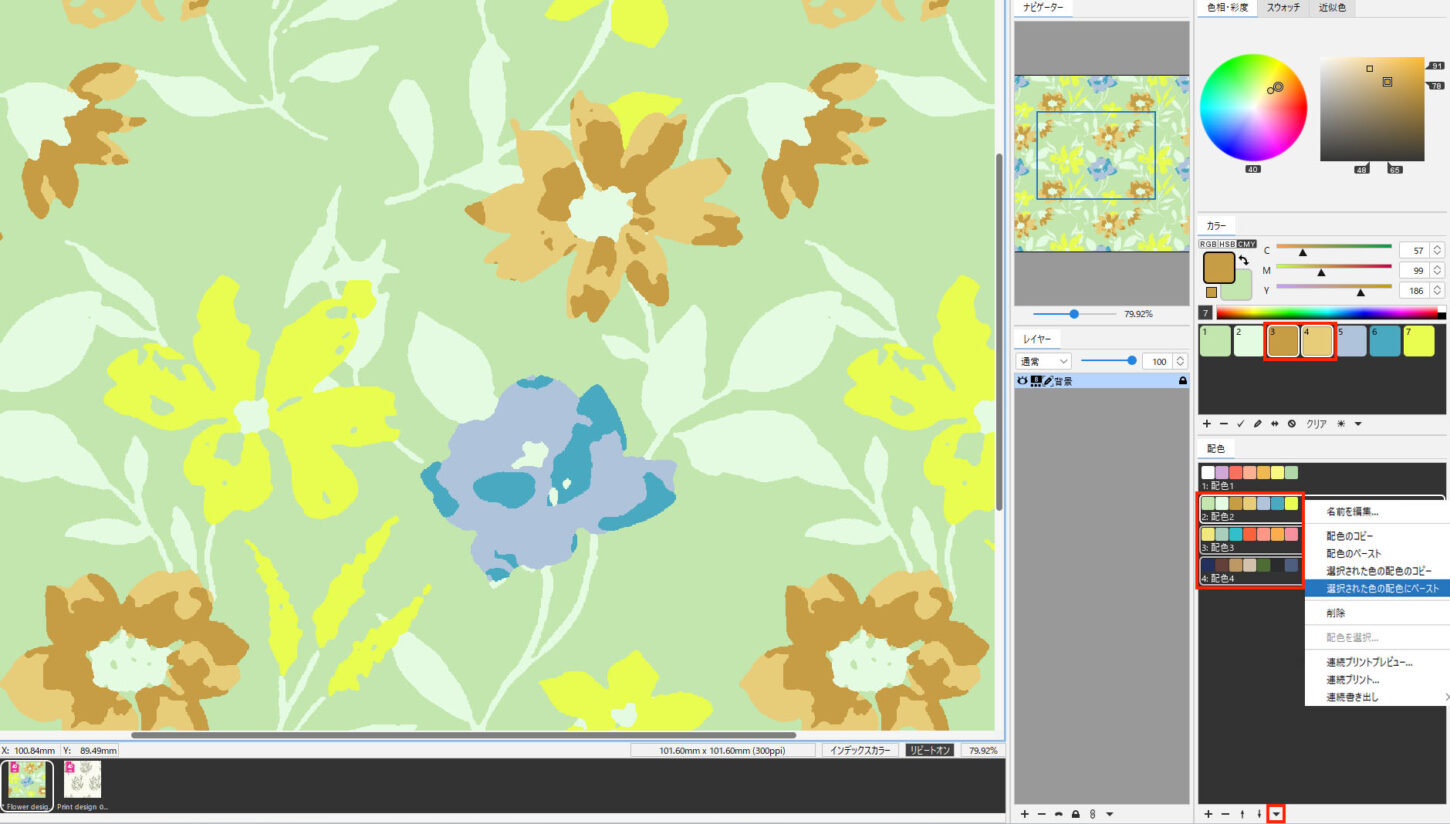 例2. 同じ図案の中で、選択された色の配色をコピー&ペースト