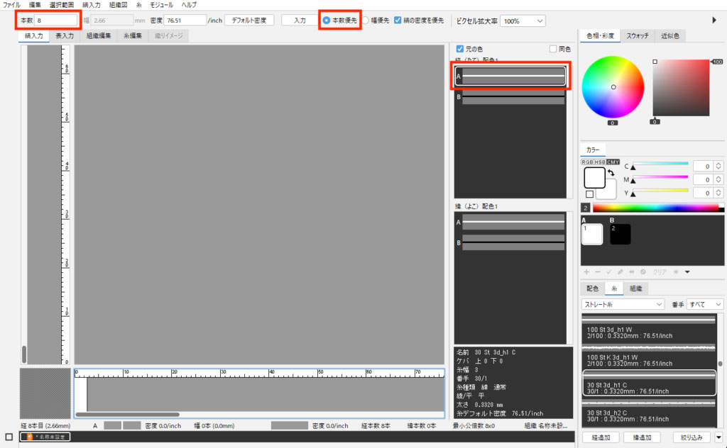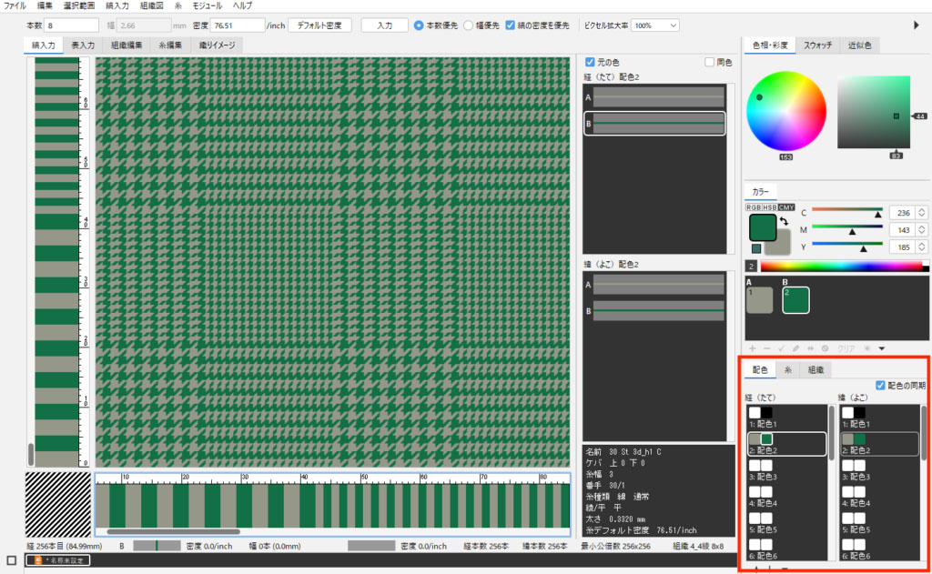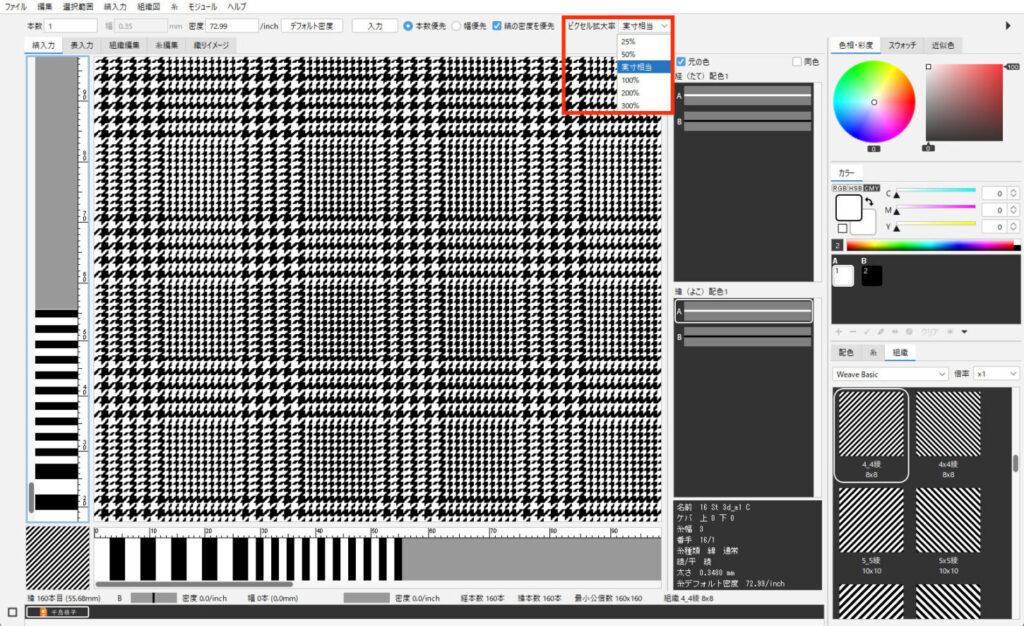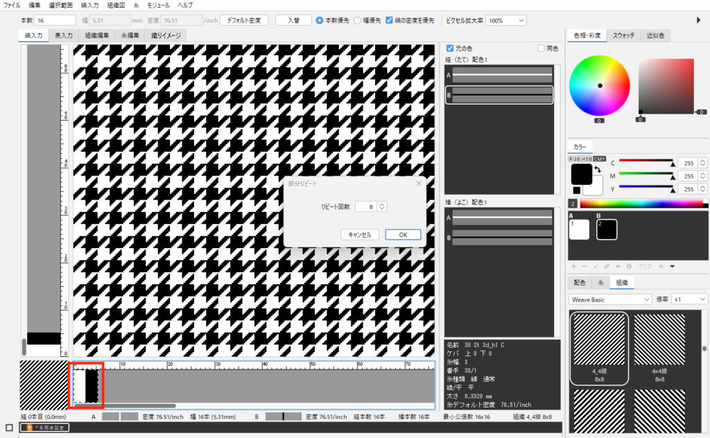 千鳥格子の大きさを変更したい場合は、組織サイズに合わせて糸本数を変更します。