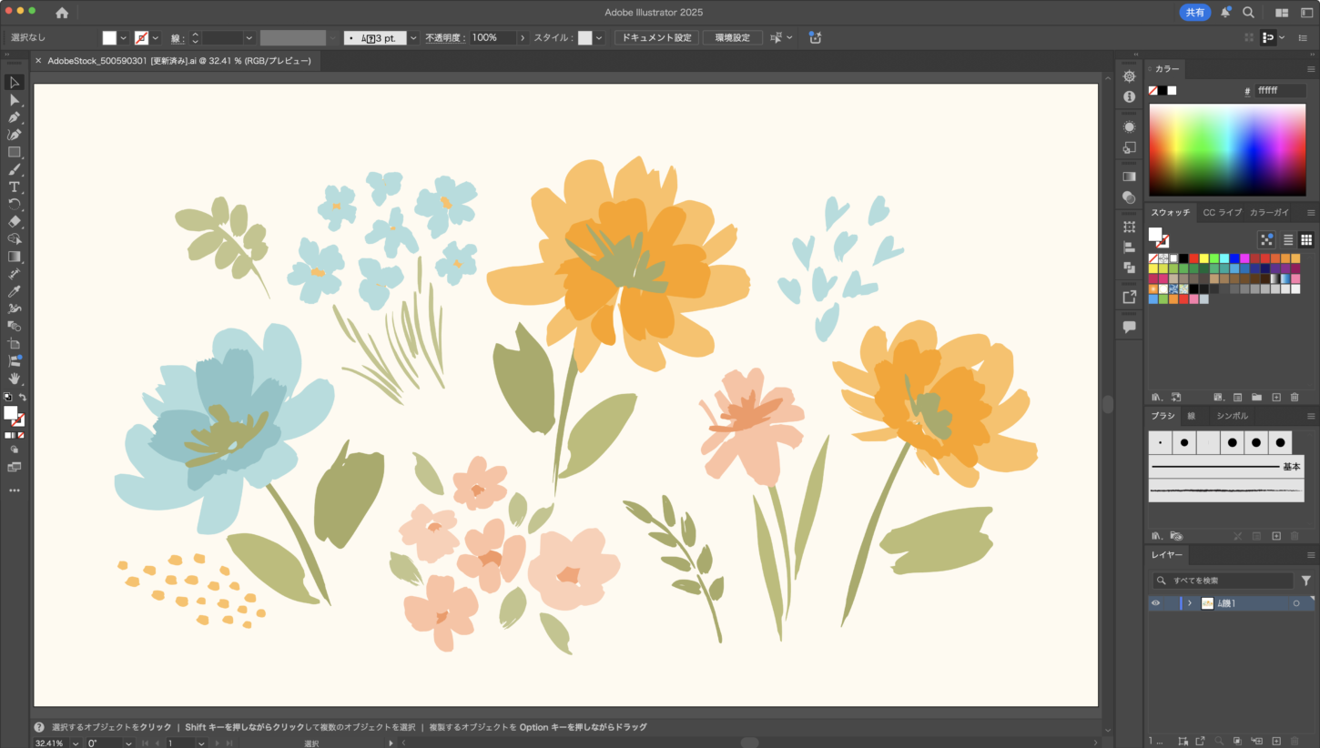Illustratorで作成した図案を、PNG書き出しから色まとめ、リピート編集、配色作成までの一連の流れで加工することで、プリント図案としてより魅力的かつ効率的に活用できます。ぜひ、あなたのデザイン制作に役立ててみてください。