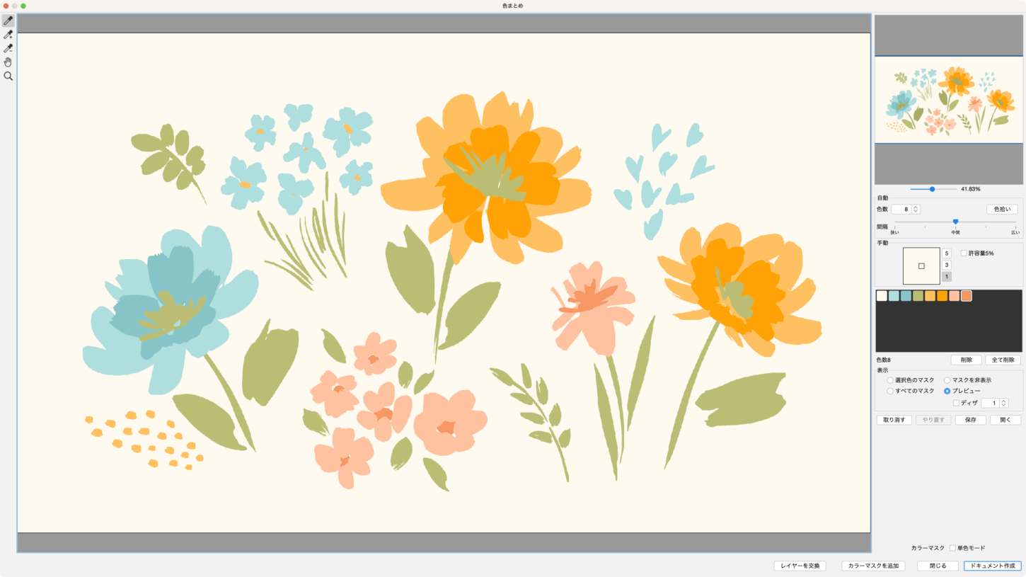 2. 自動または手動で色を抽出後、「ドキュメント作成」をクリックすれば、色まとめ作業は完了です。