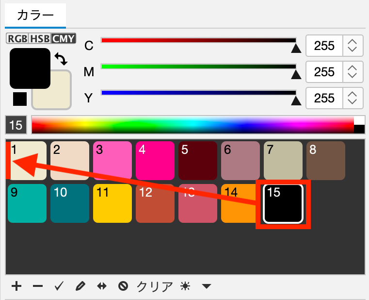 カラーパネルの色はドラッグ&ドロップで移動し、整理することができます。