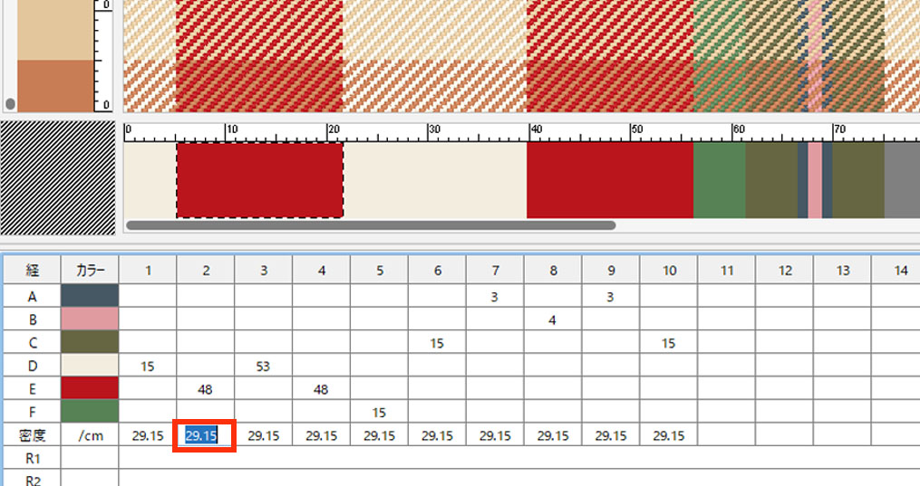 経と緯の縞割配列を入力後、全体密度を変更できます。