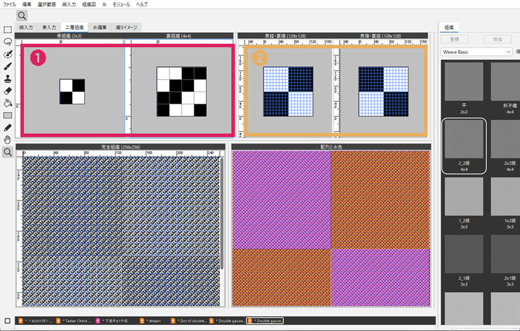 テキスタイルシミュレーションの基本機能2(二層組織 / ドビー組織)