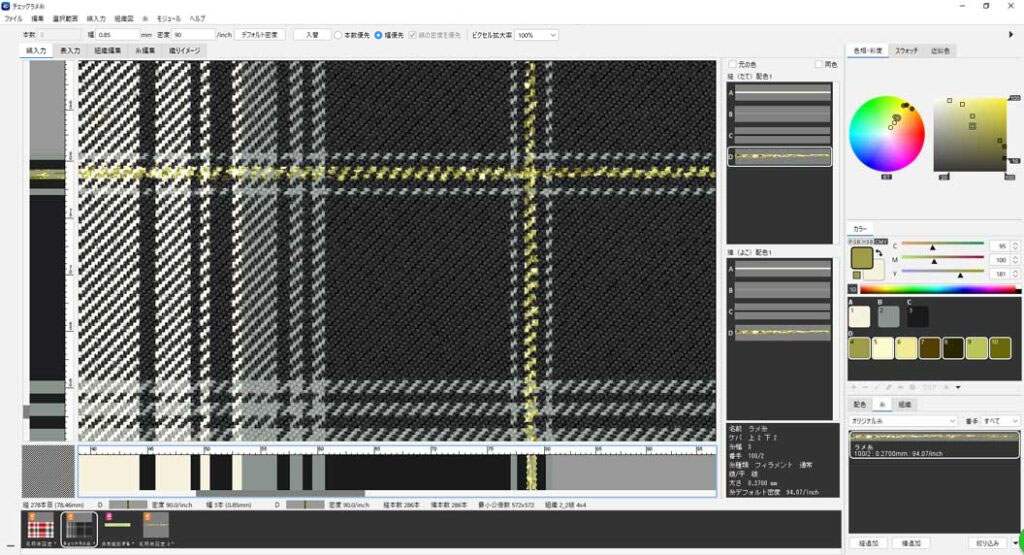 さりげなく煌めくラメ糸、アクセントにもなることから沢山のテキスタイルデザインに使用されています。PLANSのテキスタイル機能には、実際の糸をスキャナーから入力、または撮影してシミュレーションに使用することが可能です。