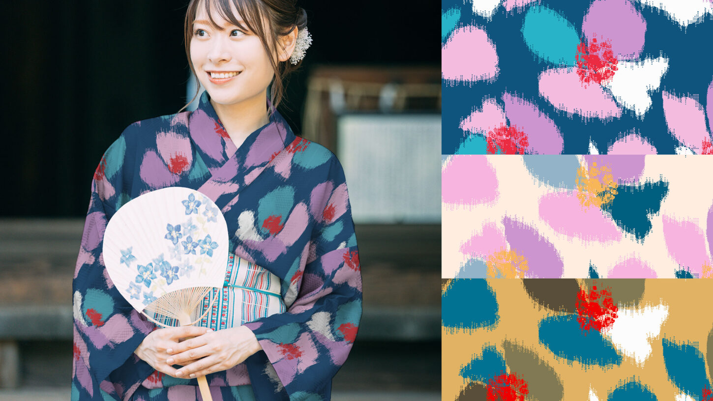プリント柄等を簡易的に絣柄(部分的に染めた織り糸を用いて織り出した織物)の表現にします。