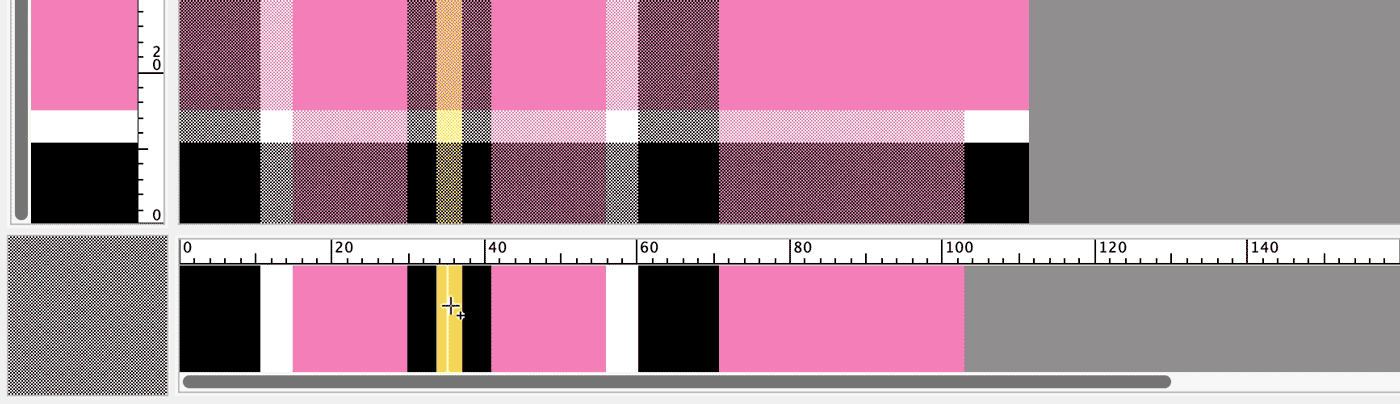 塗りつぶしツールを選択し、縞割の上を Shift + クリックすると、経(または緯)縞内の同色が全て塗りつぶされます。