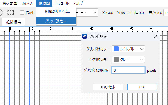 - グリッドの線カラー・間隔等を設定して「OK」をクリックします。